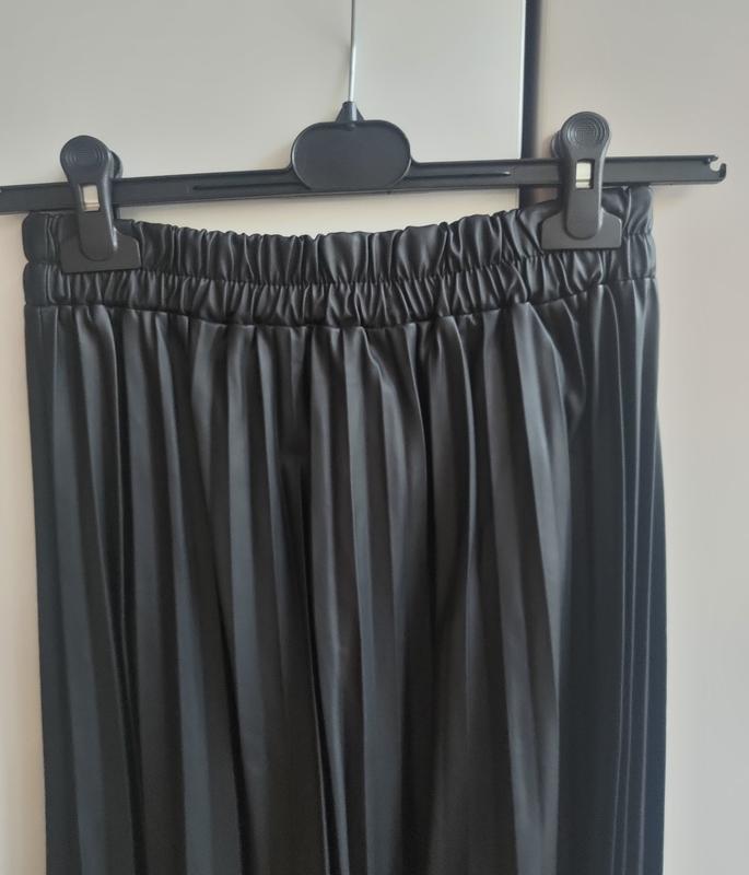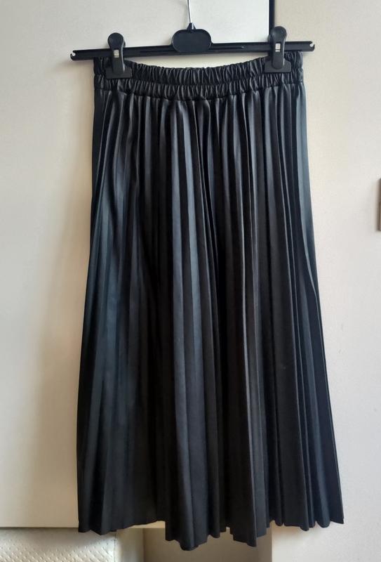 юбка миди из экокожи. плиссе. вверху на резинке. в идеальном состоянии. размер один. резинка хорошо тянется. экокожа матовая.замеры в свободном состоянии:длина 75 см.талия 62 см.