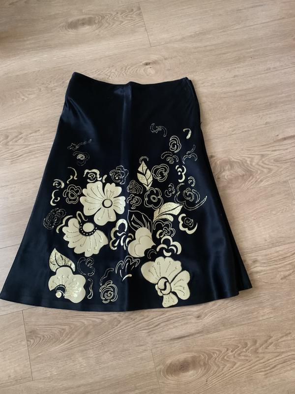 На подкладкеТрапецевидный кройСтан - идеальныйПолуобхват таліі 38смПолуобхват стегон 46-47смДлина64см Тканина - оксамитОчень стильная и красивая,