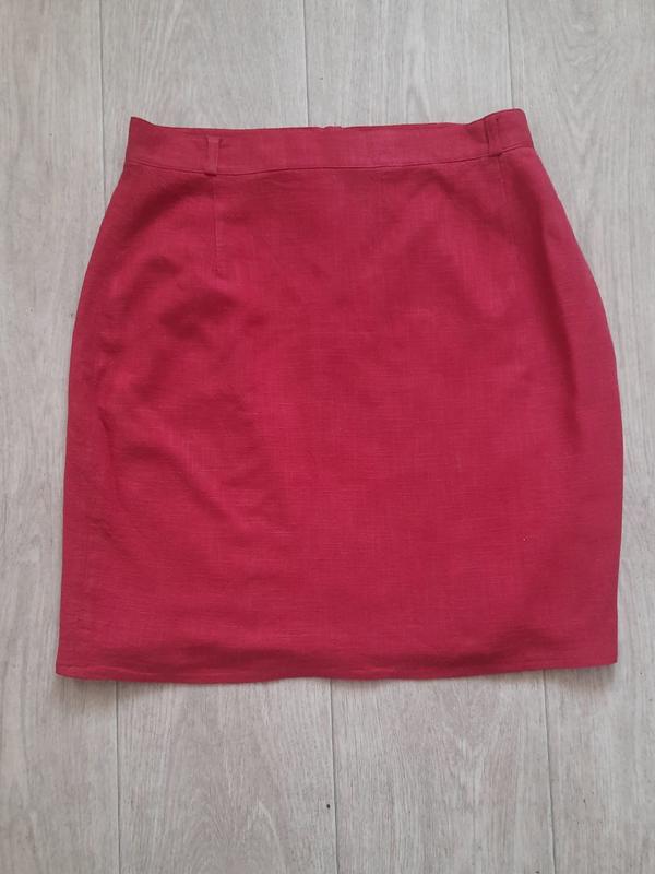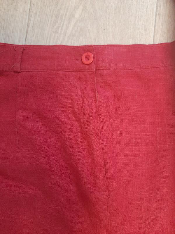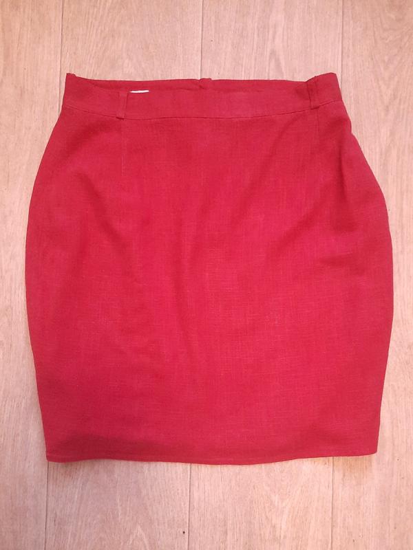 Юбка ярко красная почти до колена. Лен, вискоза, коттон. Вся натуральная. На подкладке.На лето можно отрезать.Размер 42 евро, или наш 48 и 50. На бедра до 110 см максимумТалия 39Бедра 55,5Длина 52,5