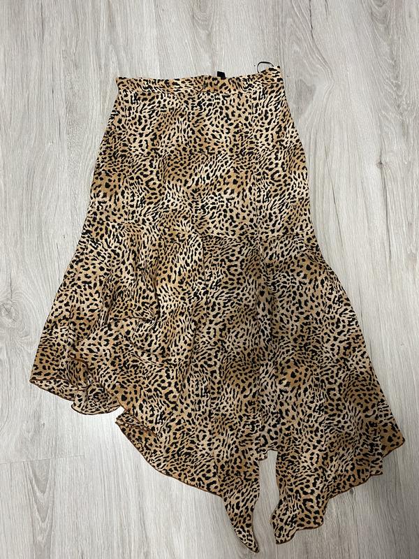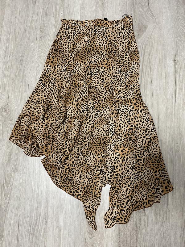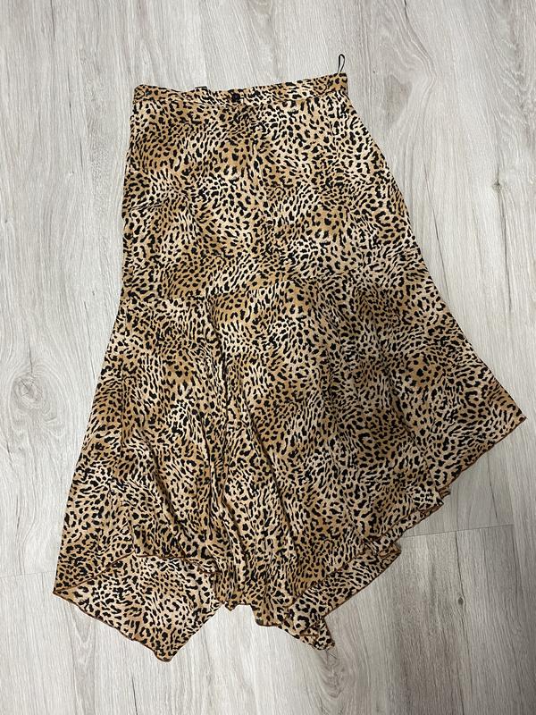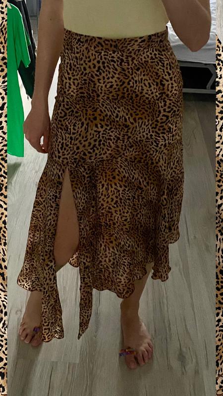 Юбка миди, с разрезом на ноге, с принтом,лео, леопардовая, юбка, легкая, летняя