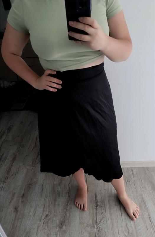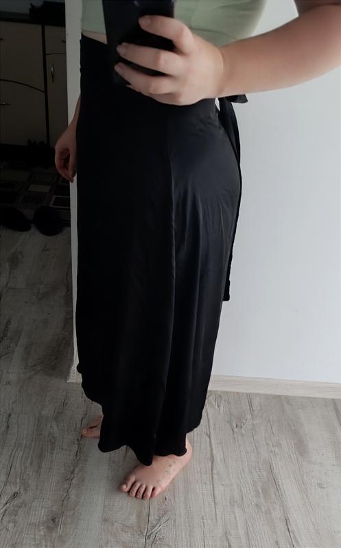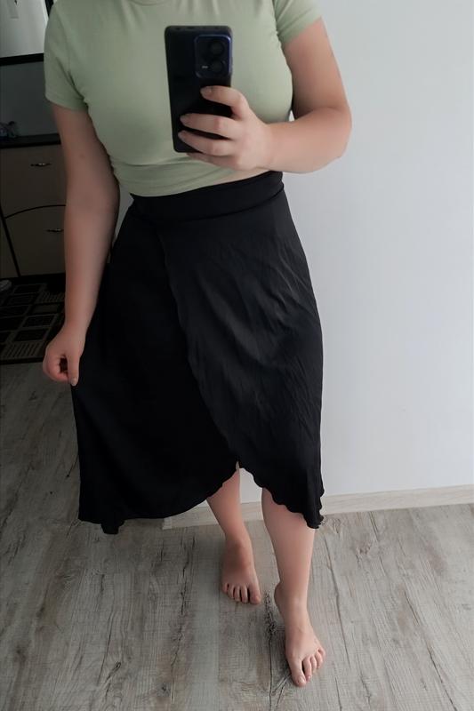 Асимметричная атласная юбка черного цвета. Очень легкая, на запах. Идеально для размера М-l. Длина 84 см.