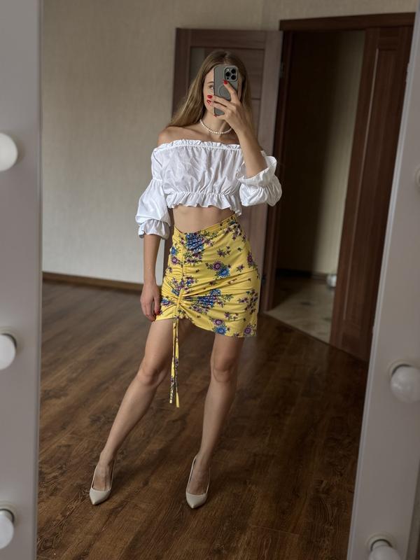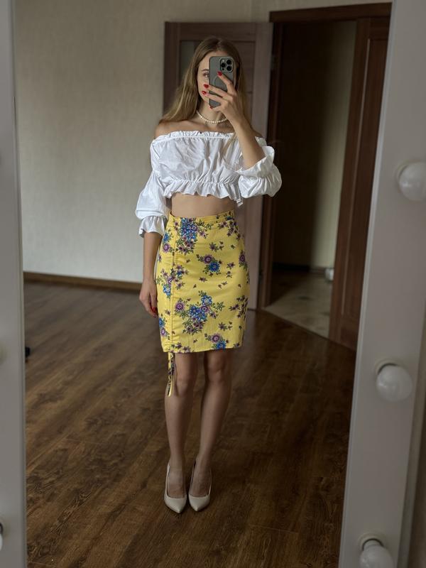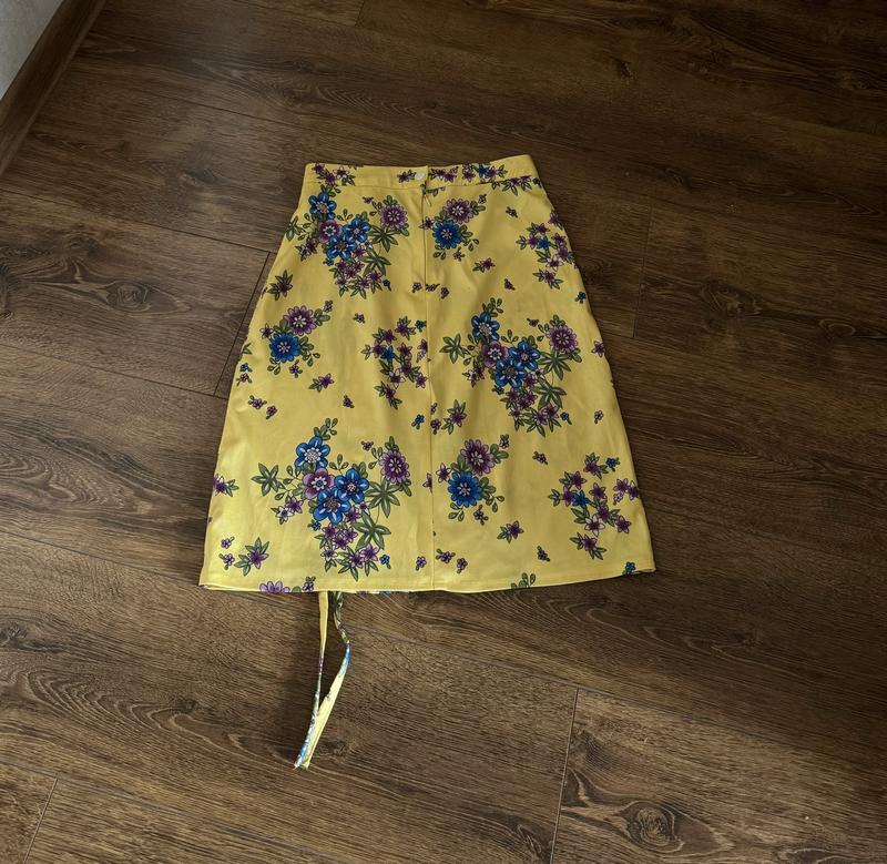 Стильная желтая юбка миди с цветами размер xs-s с разрезом