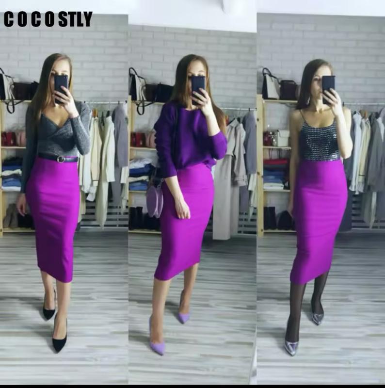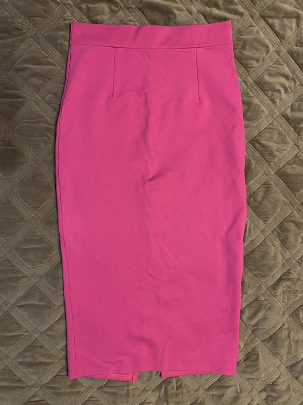 Идеальная юбка карандаш длины миди. Ткань напоминает плотный трикотаж с добавлением эластана, красиво тянется. Размер универсальный. ПОТ-34, тянется до 40, пост-45, тянется до 54, длина 77, высокая посадка. Не просвечивает, очень классная!