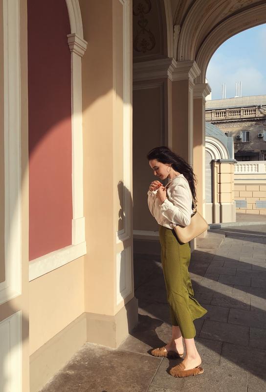 С Натуральная ткань крепдишин Болотная в маленький черный горох