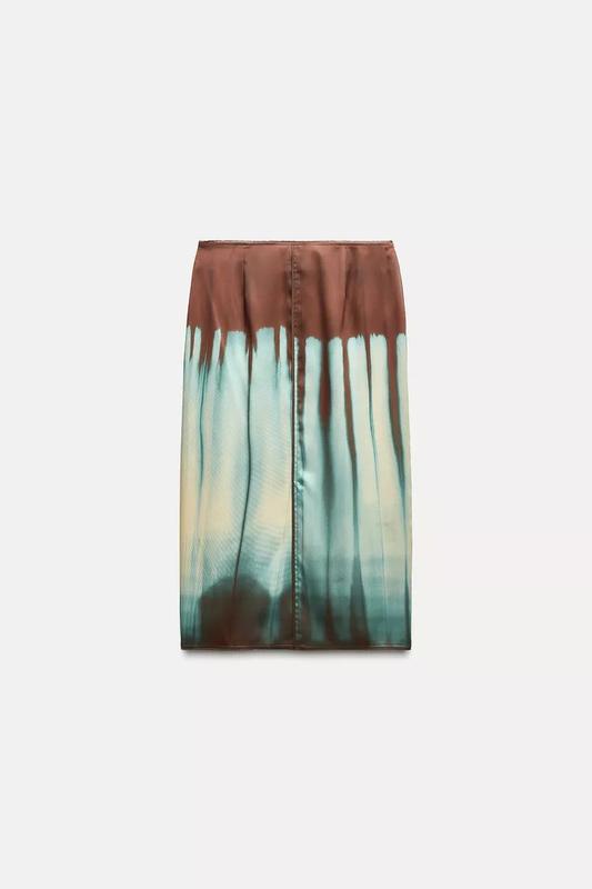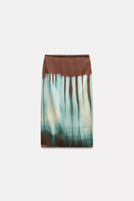Юбка средней длины со средней посадкой и разрезом внизу. Застегивается на скрытую молнию сбоку.Коричневый | 9007/093
