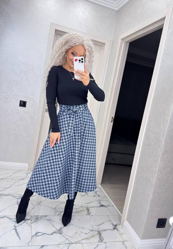 Юбка миди кашемировая Юбка на застежке, поясок в комплекте Подходит на любые бедра ▫️ткань: кашемир гусиная лапка мягкая, теплая стойкая к выцветанию ткань. Очень плотная, эластичная. ▫️длина изделия: 85 см S (42/44) М (46/48) L (50/52) .💛.🚚 отправка новой почтой 💙 отправка в течение 1-3 дней 💛является наложенный платеж с минимальной предопластой безпечна оплата обмен / обращение только по почте