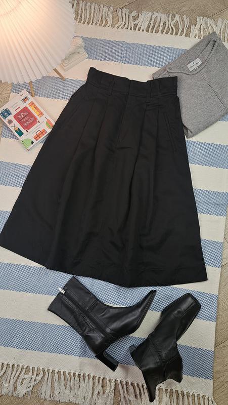 Брендовая стильная черная миди юбка Massimo Dutti🖤 полностью новая🔥 очень качественная ткань, лен входит в состав ткани, крой красиво подчеркнет талию👌размер указан 4 или 26, подойдет на размер XS / S замеры дам по запросу🥰