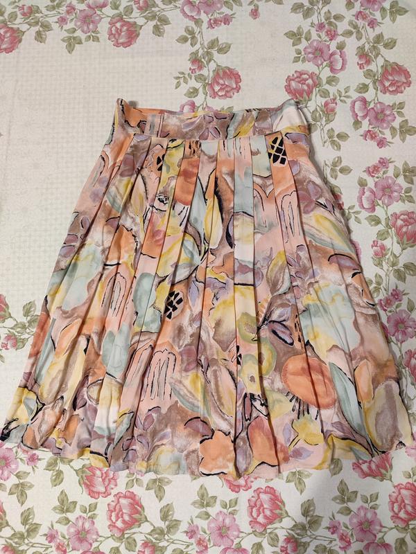 Плиссированная юбка миди, юбка цветочный принт