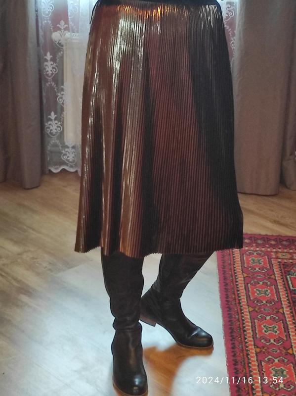 Очень необычная и стильная юбка Saint Tropez, с металлизированными волокнами, прямая, плисерированная, на широкой резинке, с трикотажной подкладкой.Чудово сочетается с обычным свитером оверсайз или в качестве наряда на праздник с другим топом! Указан размер XS, но подойдет и на M. Стан новой.Замеры на фото.