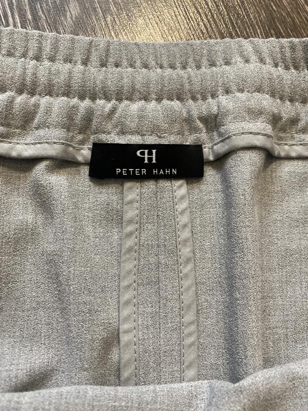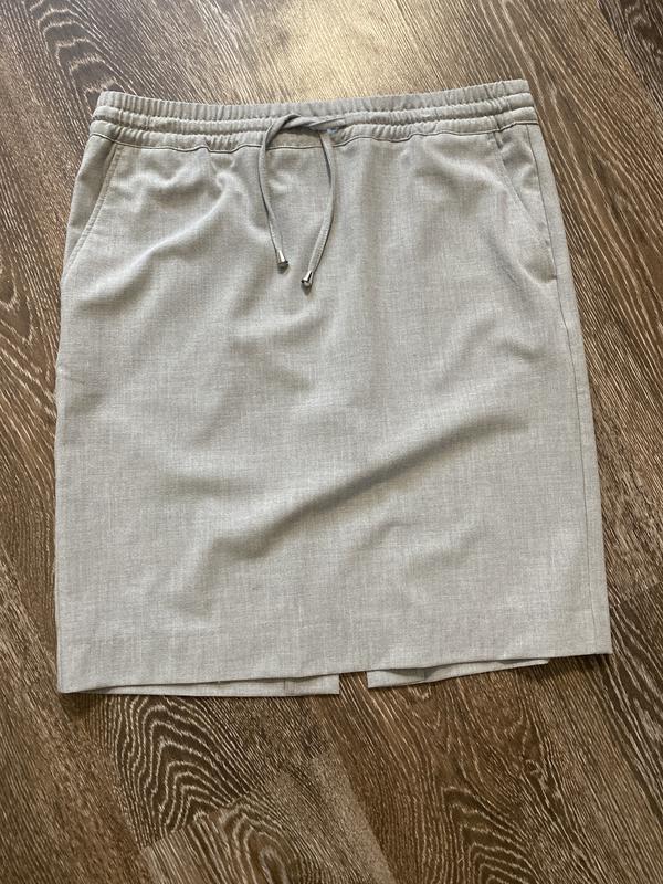Отличная качественная юбка от Peter Hahn. Цвет светло-серый, без подкладки, два косых кармана, по талии-резинка и люлька, по спинке-разрез. Состав:вискоза/полиэстер/эластан(33/63/4). Размер по набору-21. Замеры: длина-56 см, ПОТ-35 см, ПОБ-53 см,