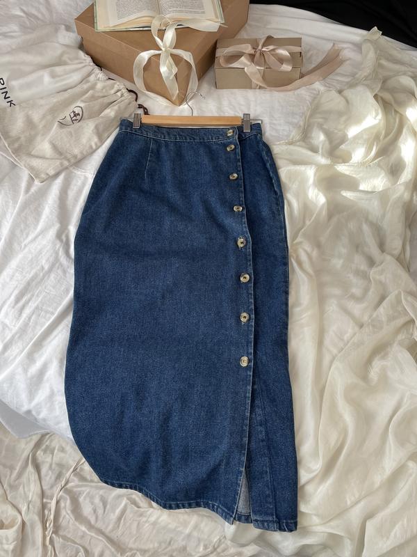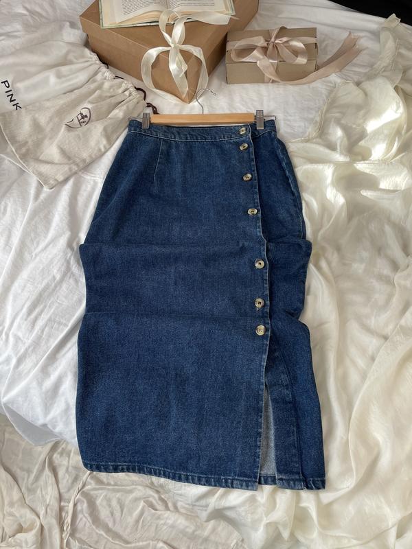 Длинная джинсовая юбка, двухлинная джинсовая юбка на пуговиках, юбка меди, юбка миди,юбка джинсовая