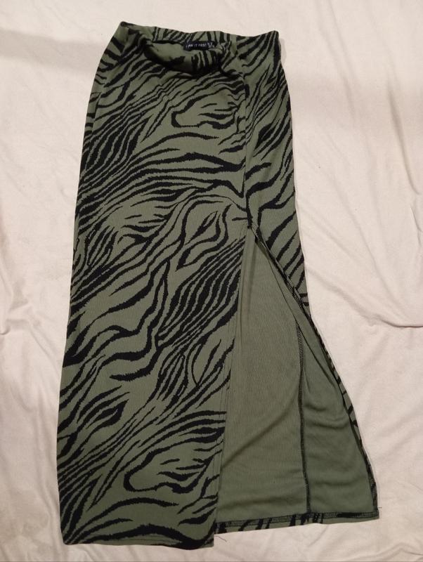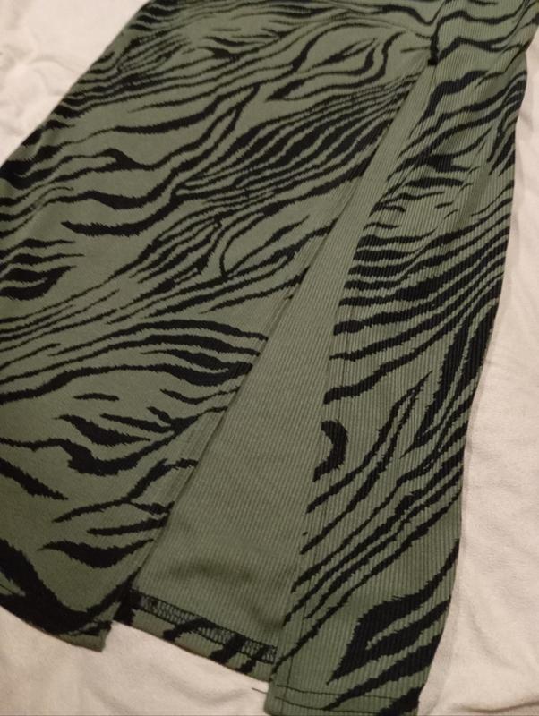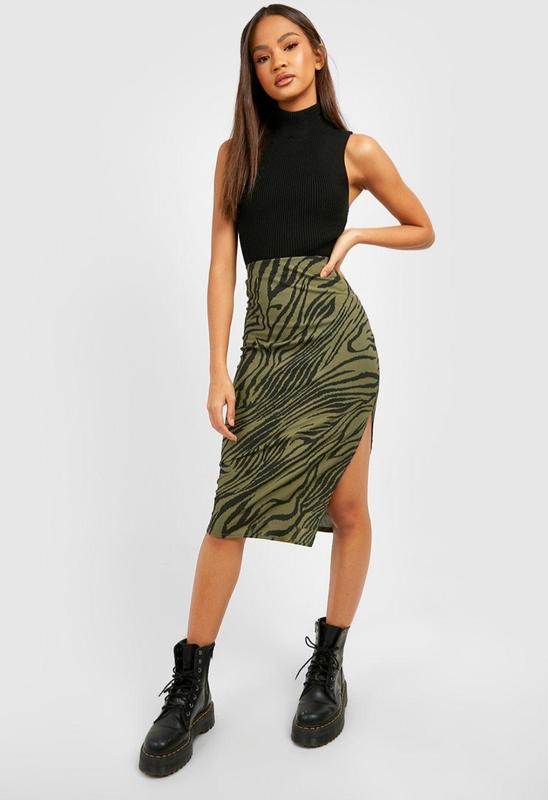 СПЕДНИКА МИДИ С РАЗДЕЛЕНИЯМ С БОКУ И ЗЕБРЫ ХАКИ