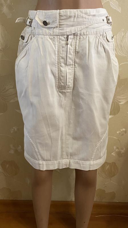 Біла базова котонова спідниця,прямого крою,з кишенями ,Оригінал, брендована фурнітура