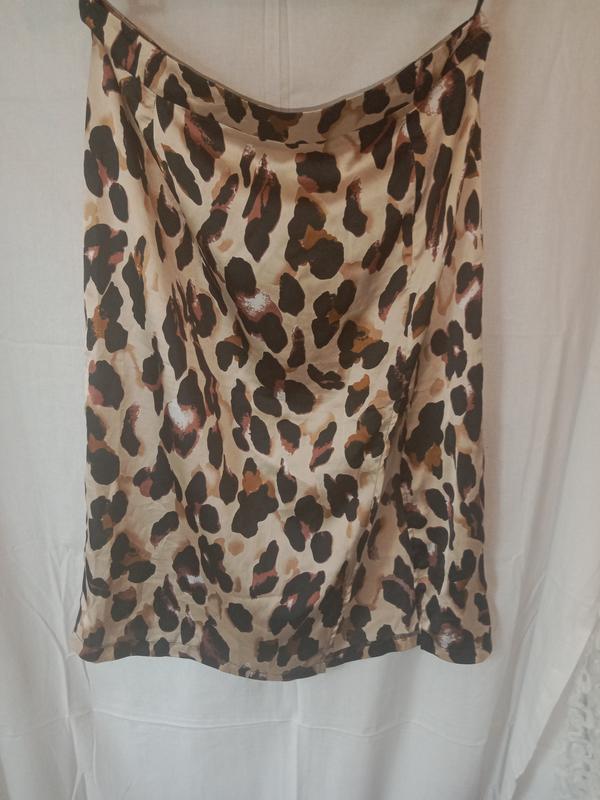 Леопардовая шелковая юбка миди с принтом юбка бежевая коричневая