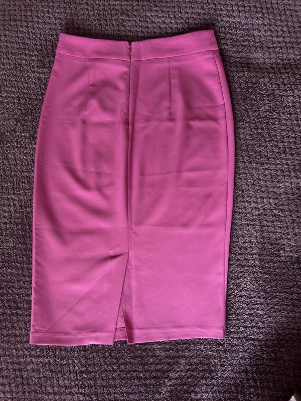 Рожева спідниця міді з розрізом на нозі