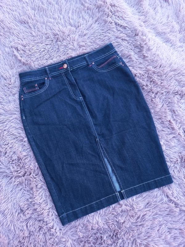 Стильная, джинсовая юбочка-карандаш с разрезом, актуального, модного цвета, размер 14uk, замеры: длина 62, ПОТ 43-48, ПОБ 53-60. 73% котон, 26% поліестер, 1% еластан.