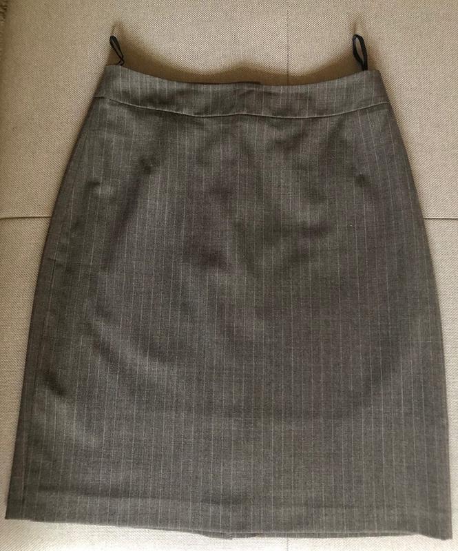Прямая, коричневая в еле заметную бежевую полоску, с выточками и разрезом сзади, на подкладке. Безупречного качества, отличный состав, в идеальном состоянии, сделана в Германии. Талия в полуохвате 37 см, бедра 49-50 см, длина 53 см.