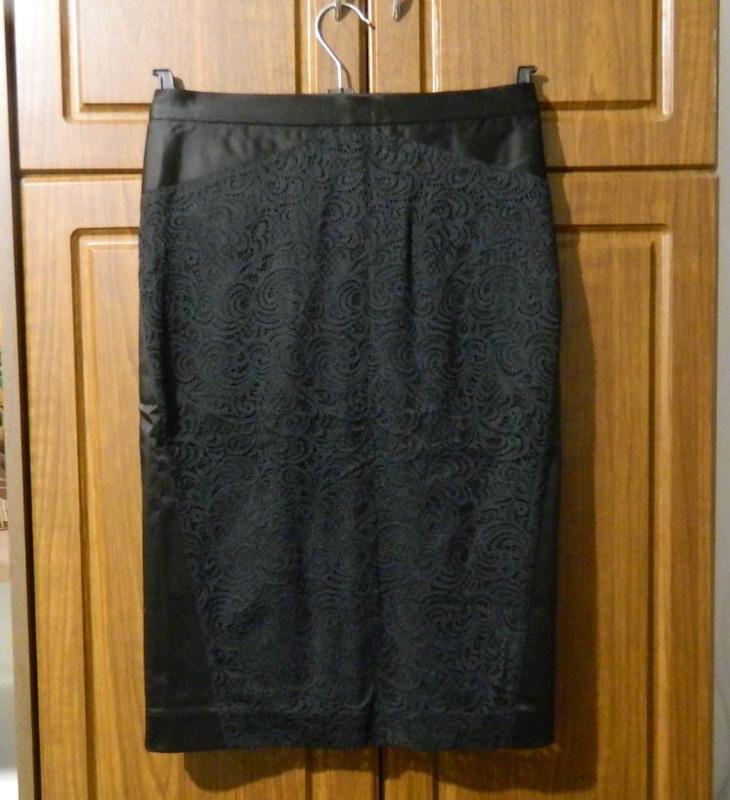 Шикарная юбка Люкс класса. Вечерняя, деловая. Карандаш, красиво ложится по фигуре. Отменного качества комбинированная ткань: 94% nylon, 6% elastane, немного стрейч, на подкладе. Кружево по центру, верх и бока из плотной эластичной ткани. Застежка на спинке на молнию.