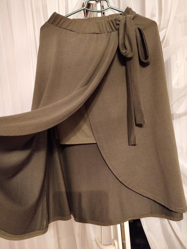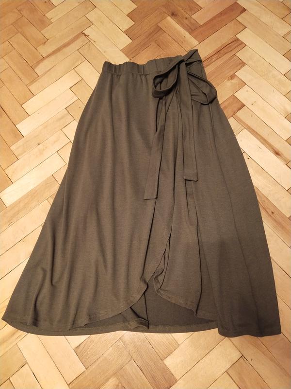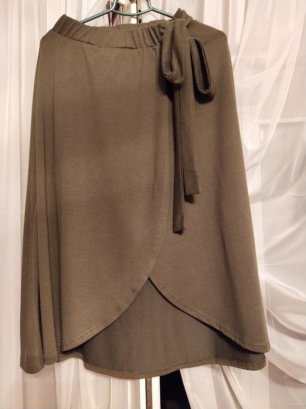 Спідниця міді трикотажна кольору хакі. Розмір S. Довжина виробу 75 см