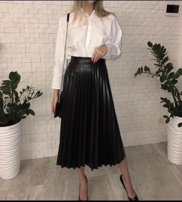 Юбка плиссе из эко кожи