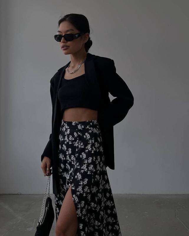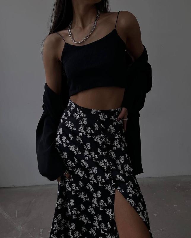 Стильна літня спідниця-міді з розрізом збоку.Довжина: 76смМатеріал: софтВисока посадкаЛегка приємна до тіла тканина 😍Розміри SM | MLТалія: 60-66см | 69-75смСтегна : 88-94 см | 95-99 см