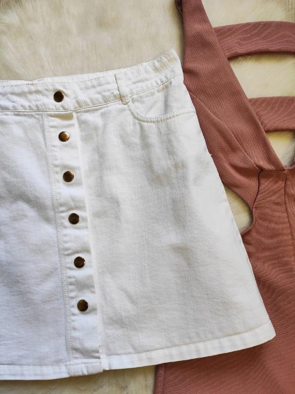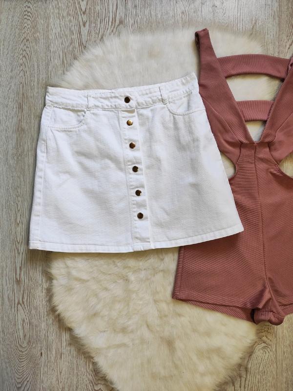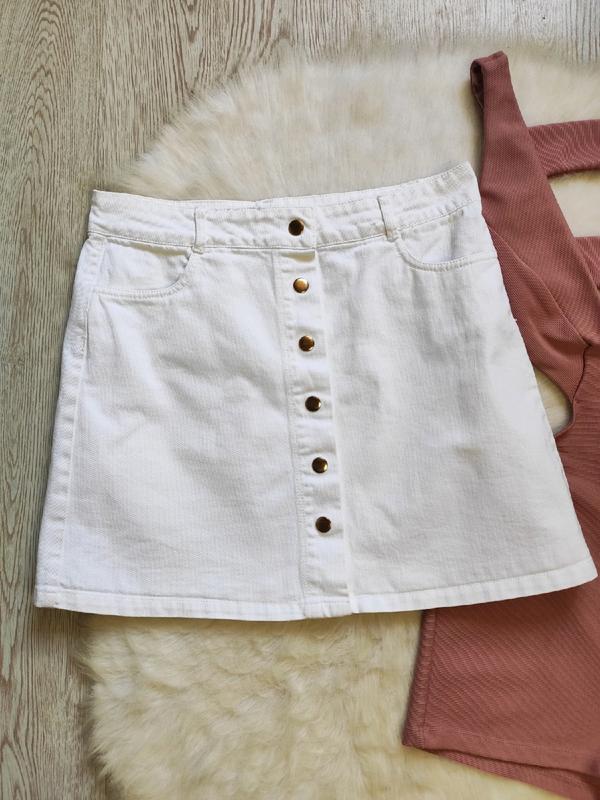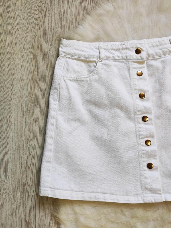 Белая плотная короткая джинсовая юбка мини трапеция с кнопками спереди карманами от Reserved