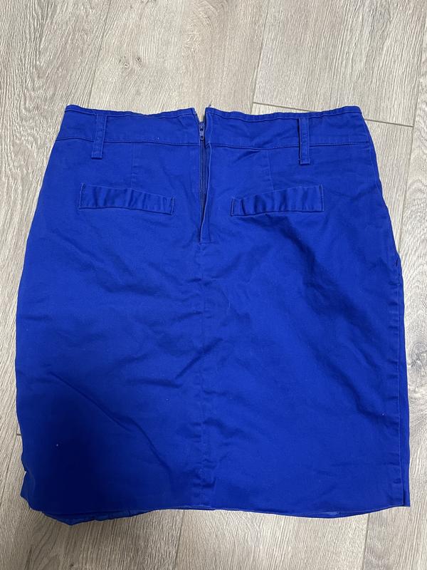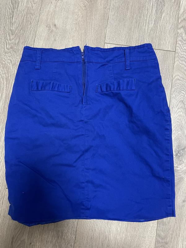 Базовая классическая синяя джинсовая мини короткая юбка котон деним хлопок с необработанным краем цвет индиго темно голубая