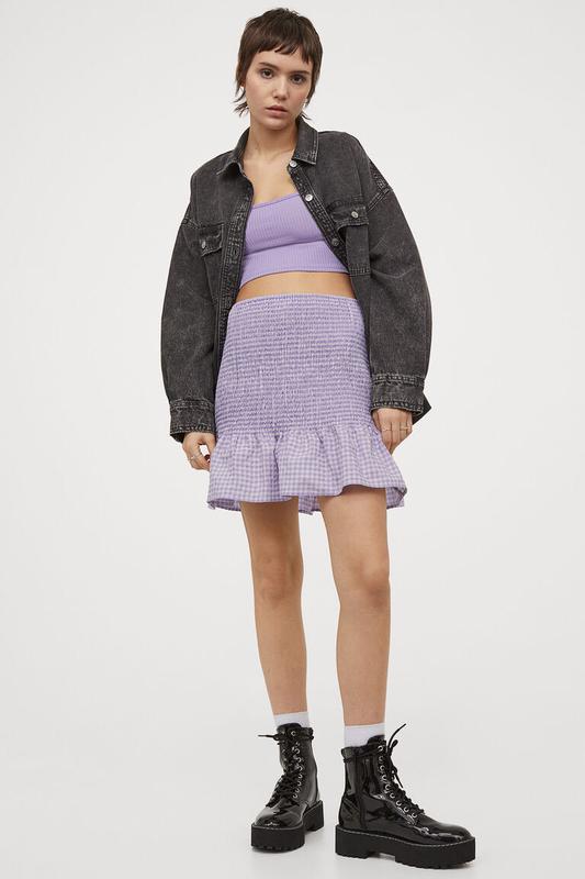 Размер XlКороткая юбка из тканого материала со сборками сверху, узкой резинкой на талии и швом и широкой расклешенной оборкой по низу.