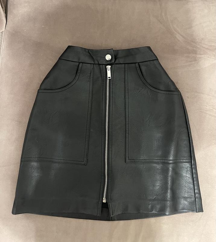Кожаная юбка stradivarius с молнией