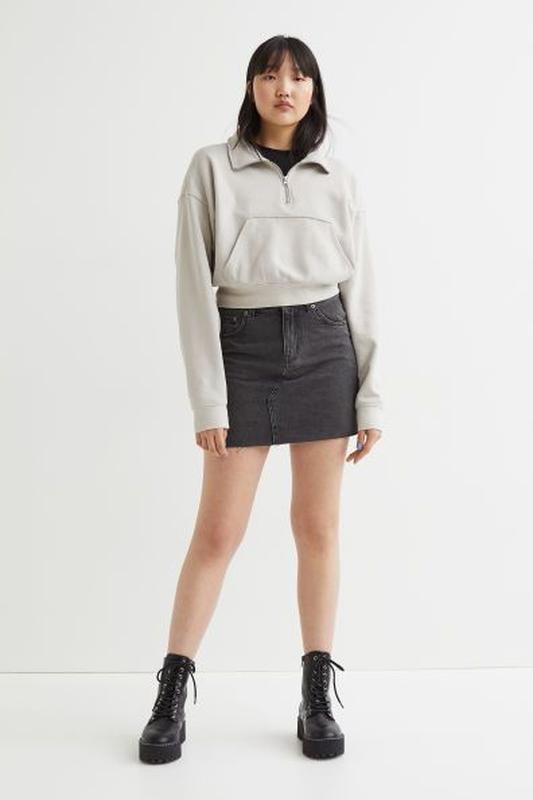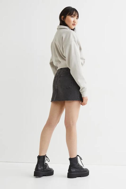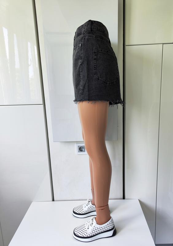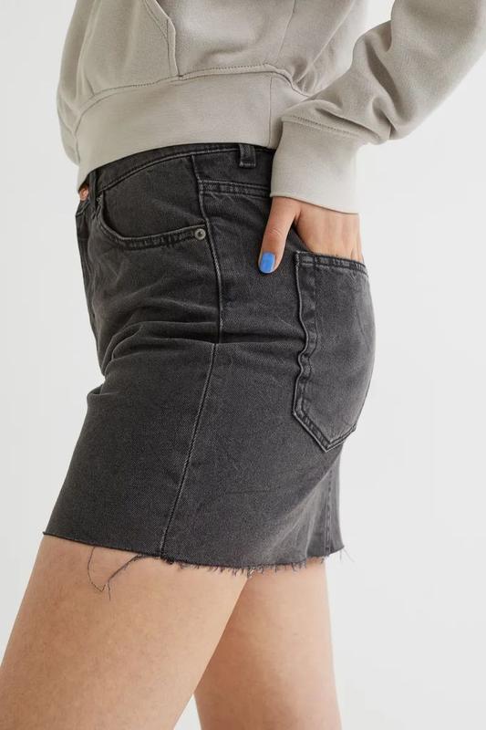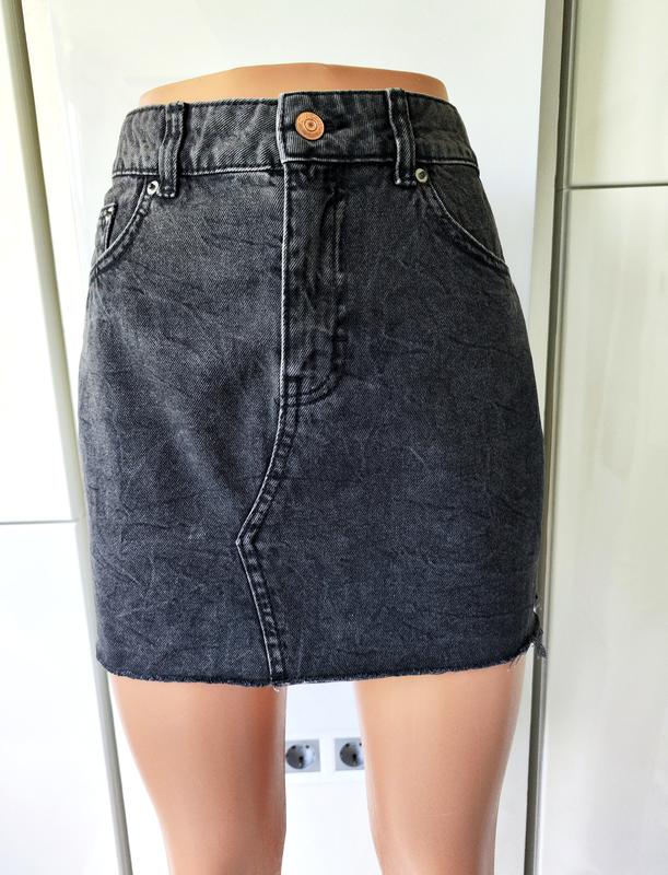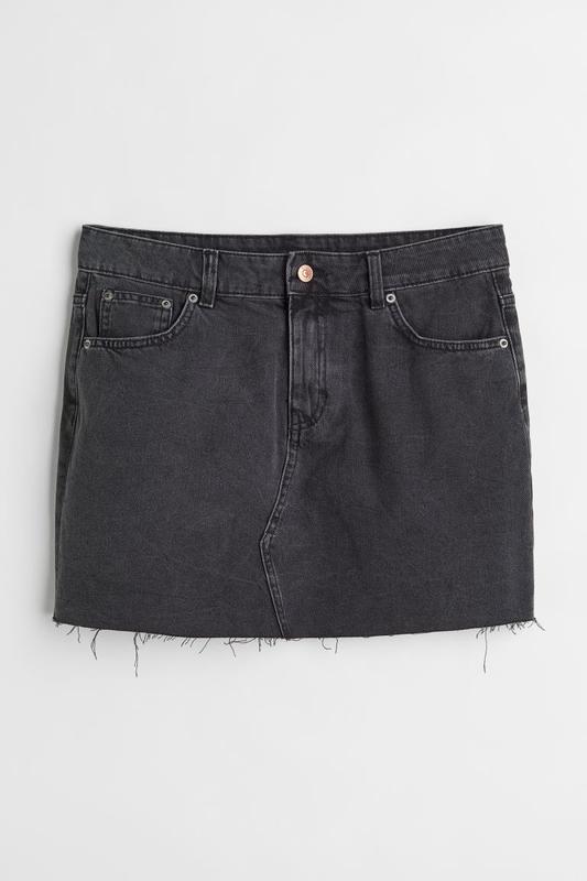 Короткая юбка с пятью карманами из прочного хлопкового денима в идеальном стиле 90-х. Узкий крой с классической талией, ширинкой на молнии и пуговице и необработанным краем.