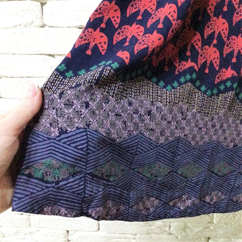 Юбка двусторонняя, 2 в 1, еноты и птицы.