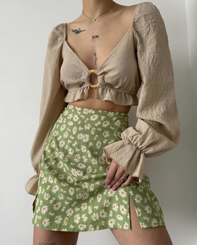 Мини юбка с разрезом, размер М, длина 42, пот 34