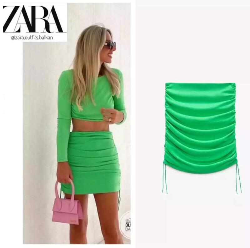 Брендовая короткая яркая зеленая салатовая юбка с высокой посадкой со сборками кулисками z...