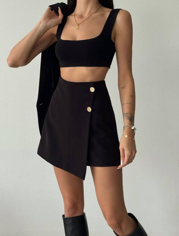 Трендовая юбочка-шорты ❤️ Очень стильная,жно одевать под колготы, гольфы, осеннюю обувь и косуху • производство Турция🇹🇷 • черные S M• тканина котон Цена 🔥715 грнbon