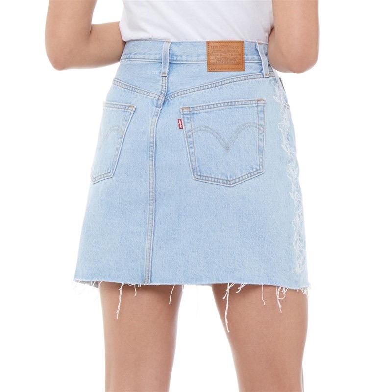 Голуба джинсова спілниця з вишивкою нова джинсова юбка levi’s светло-голубая юбка с вышивк...