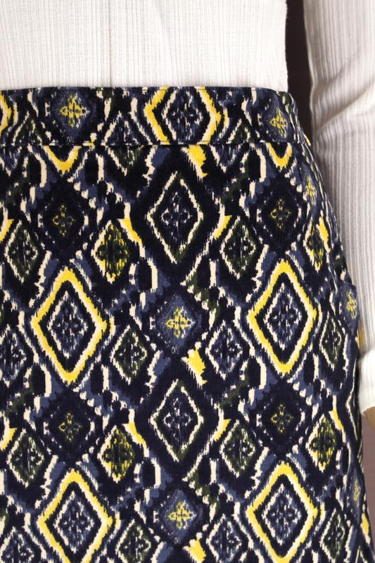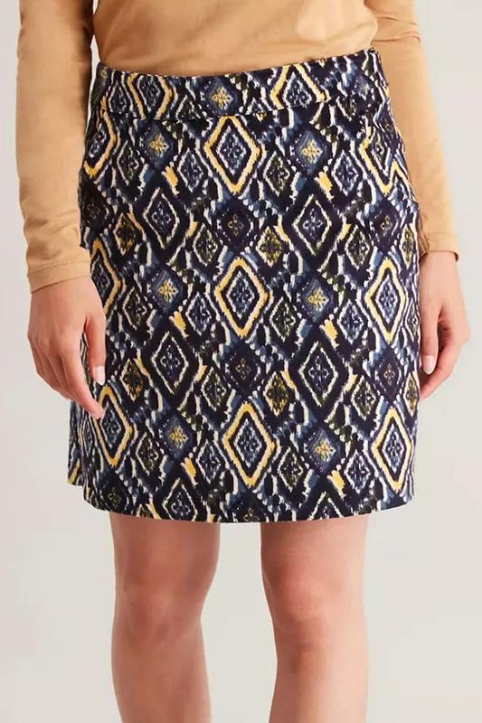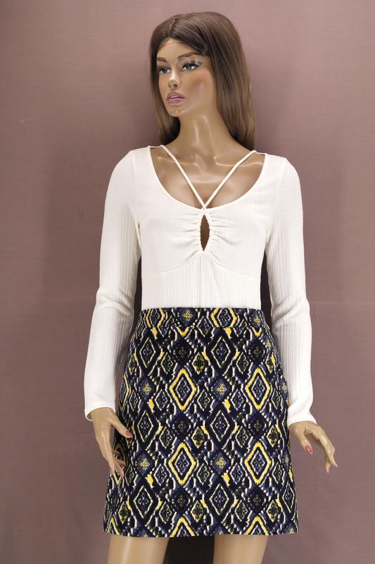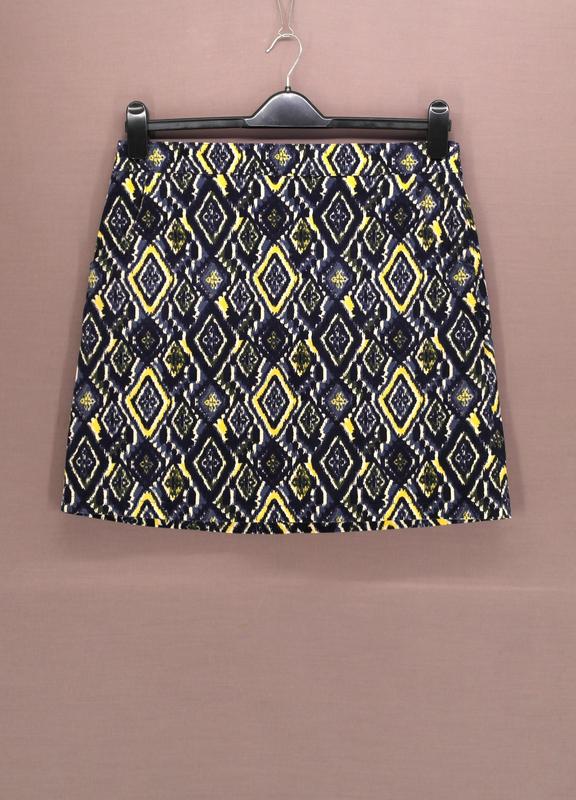 Брендовая юбка "TU" из микровельвета с геометрическим принтом. Размер uk14.