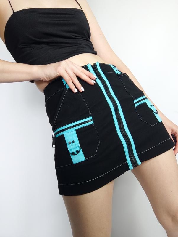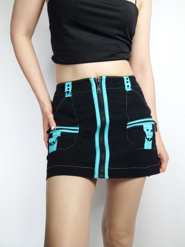 Мини юбка с акцентными вставками на низкой посадке, в стиле Bratz. Какие-то на высоте. Очень плотная качественная ткань и фурнитура.🌿Замеры:длина 33,5 смпот 35 смпоб 45 см.❗ Немного деформировалась молния после стирки.