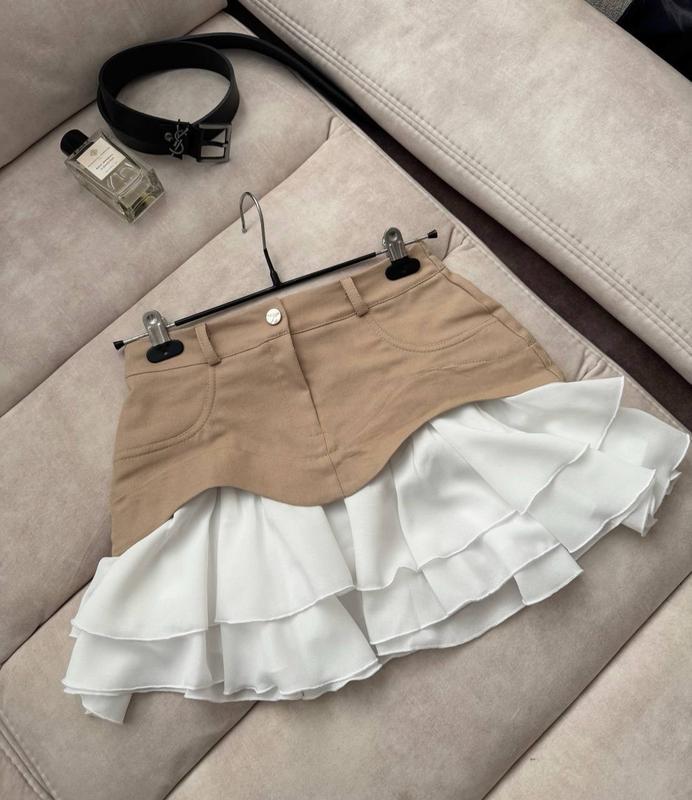 Трендовая юбка мини с имитацией баски стильная юбка джинсовая с воланами