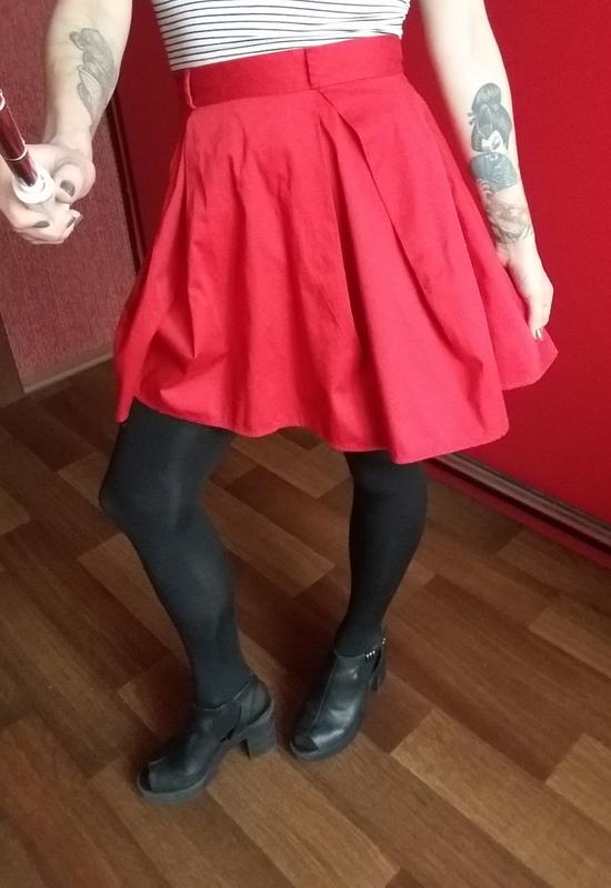 Ярко красная юбка солнце с карманами,высокая талия12 размерДлина 48 смПОТ 37-38 смМатериал плотный ,держит формуШикарное качество