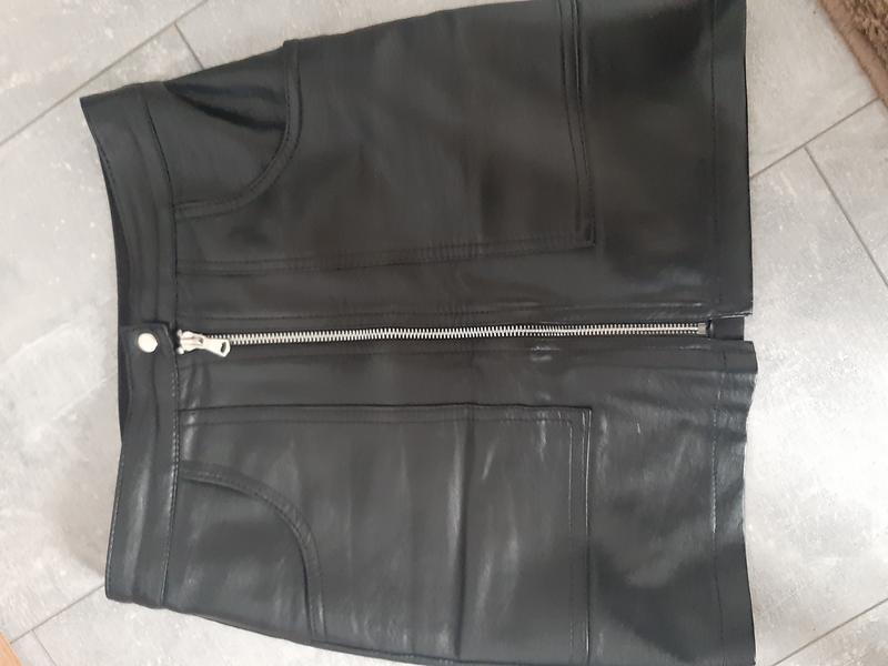 юбка с искусственной кожи, нету дефектов. в идеальном состоянии. короткая.