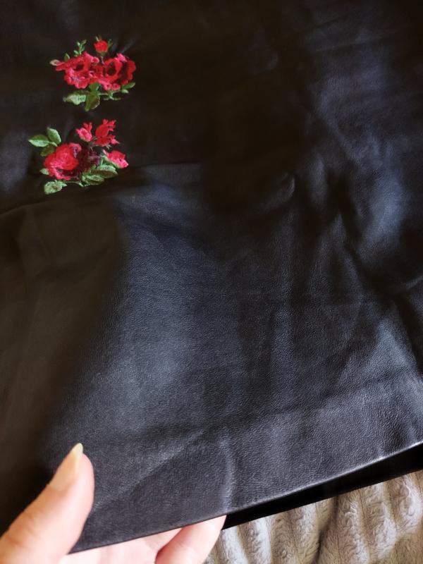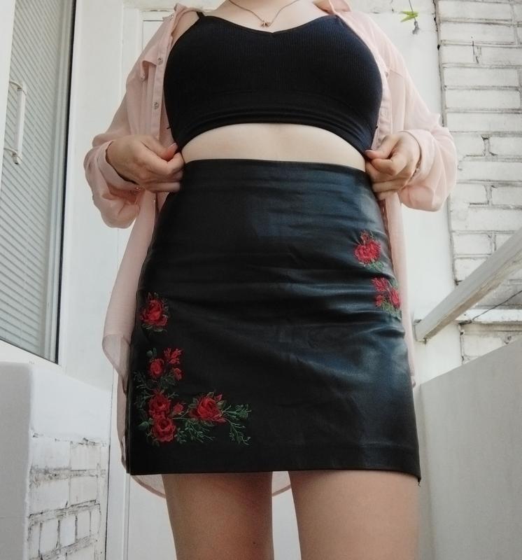 Короткая чёрная мини юбка с вышивкой из красных роз.