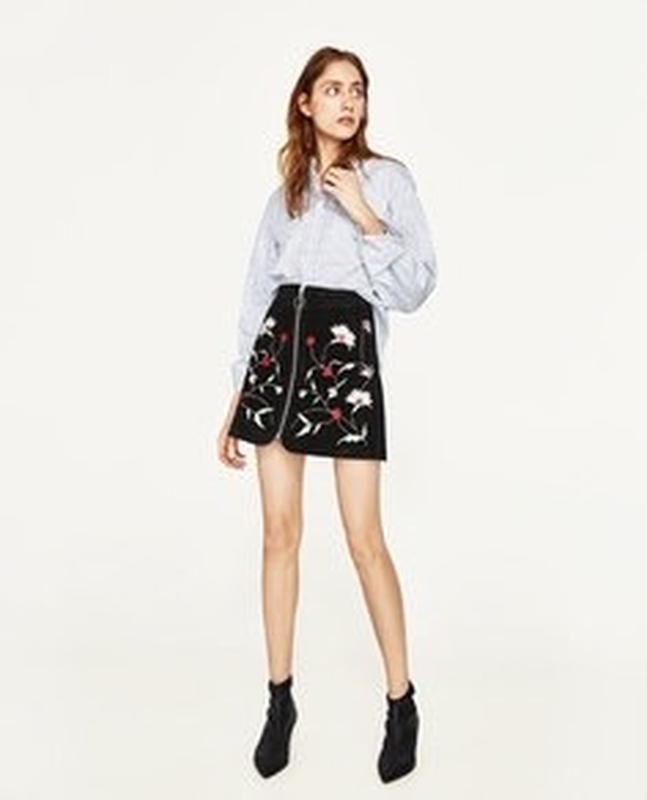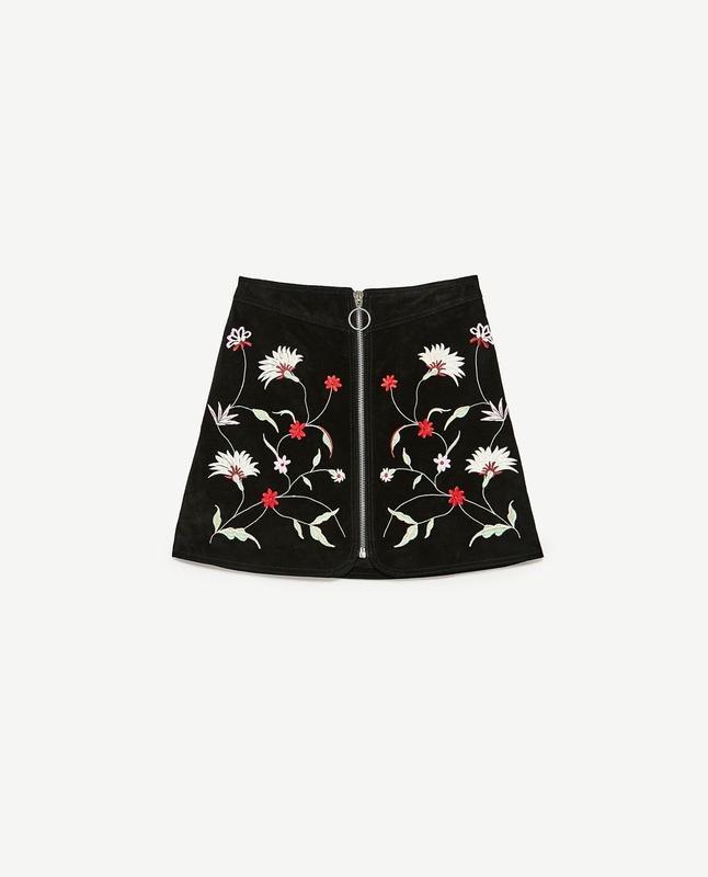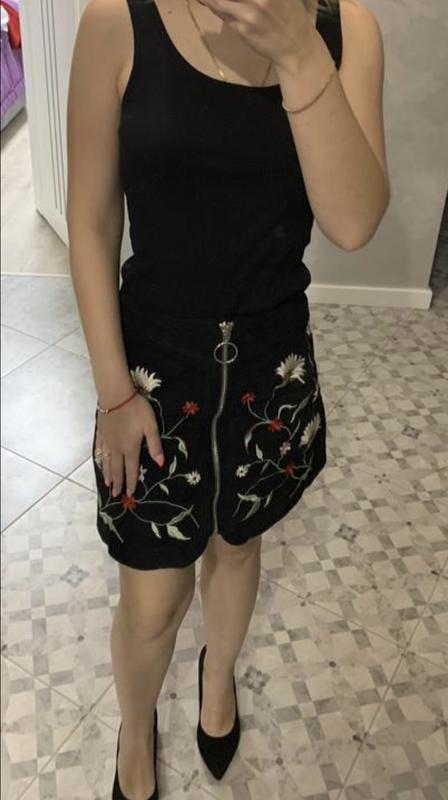 Мини юбка из замши с вышивкой zara юбочка вышывка зара