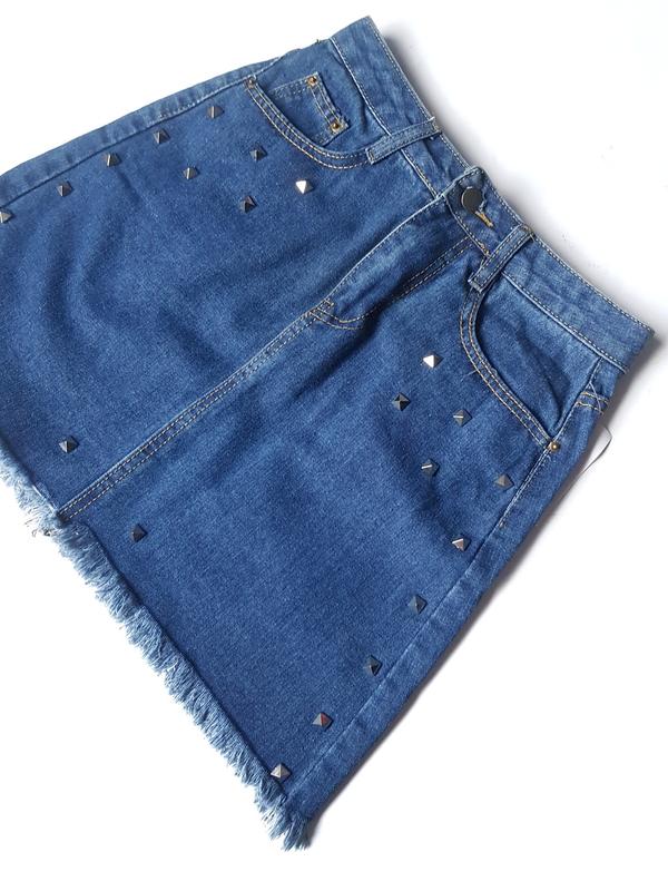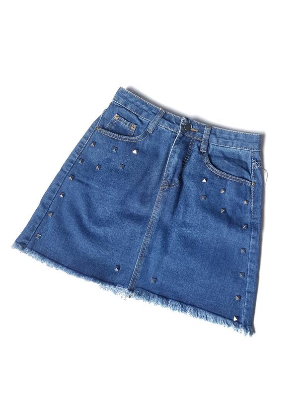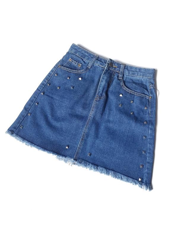 Юбка джинсовая синяя с заклепками