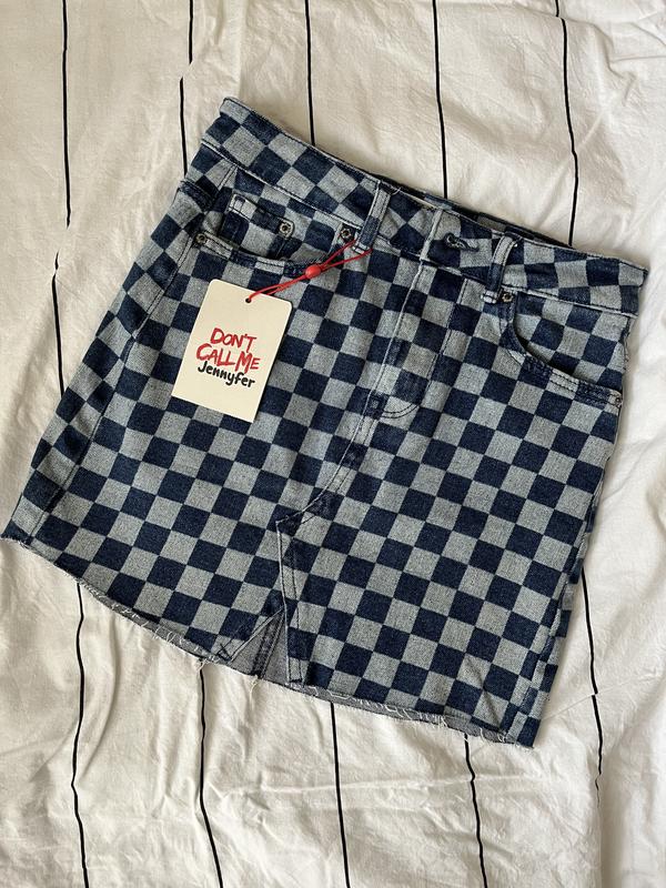 Стильна джинсова спідничка в шахову клітку З необробленим краєм Нова, з біркою