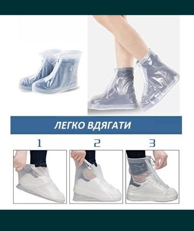 Чехли от дождя для обуви. Бахилы многоразовые. Чехлы для обуви дождевики 40-41 (27.7 см) белые и голубые, 36-37 розовые водонепроницаемые, чехли для обуви от дождя, бахили, дождевики Бахилы для обуви водонепроницаемые изготовлены из высококачественного ПВХ. У них качественно пропаян шов, а подошва с антискользящим рисунком позволяет спокойно ходить по любой скользкой поверхности. Вставка из ПВХ под замком-молнией предотвращает попадание воды во время дождя. Шнурок с затяжками-фиксаторами надежно зафиксирует чехлы на лодыжках и потому вы их не потеряете. За ними легко и просто ухаживать: снял, помыл, просушил, упаковал. Они компактны и вы легко сможете носить их в сумке или рюкзаке занимают мало места при хранении.
