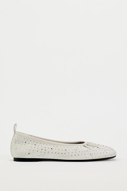 Балетки. Верх с блестящими украшениями. Округлый нос.
