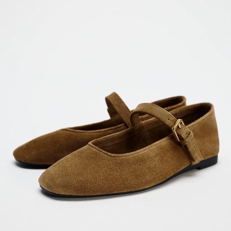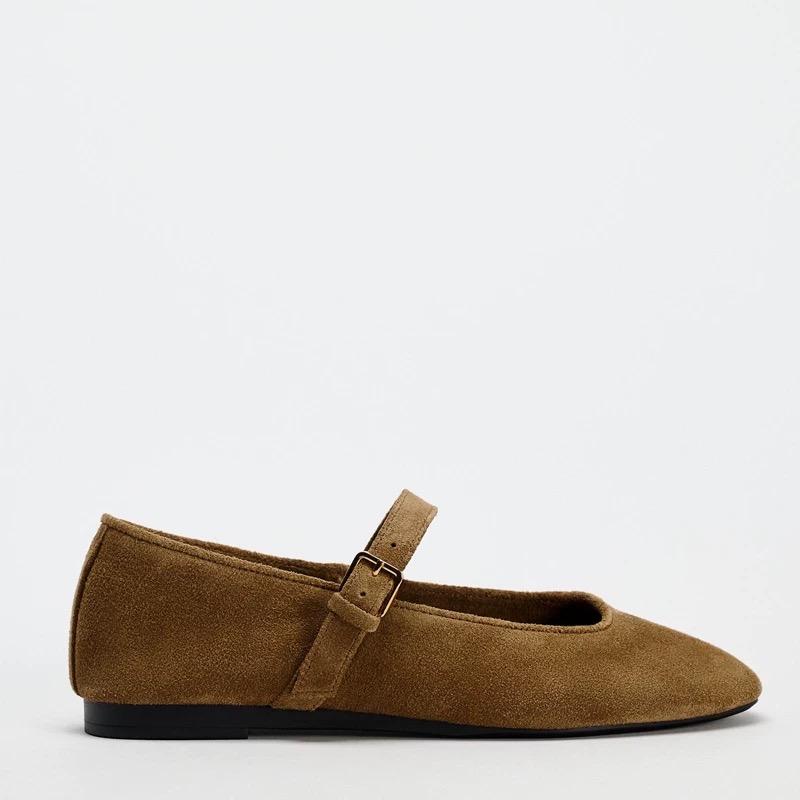 Балетки zara замша коричневые новые обувь женские ржи балетки