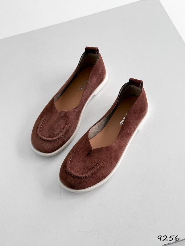 Балетки шоколад трендові, натуральний замш. мають носик анатомічної стопи людини