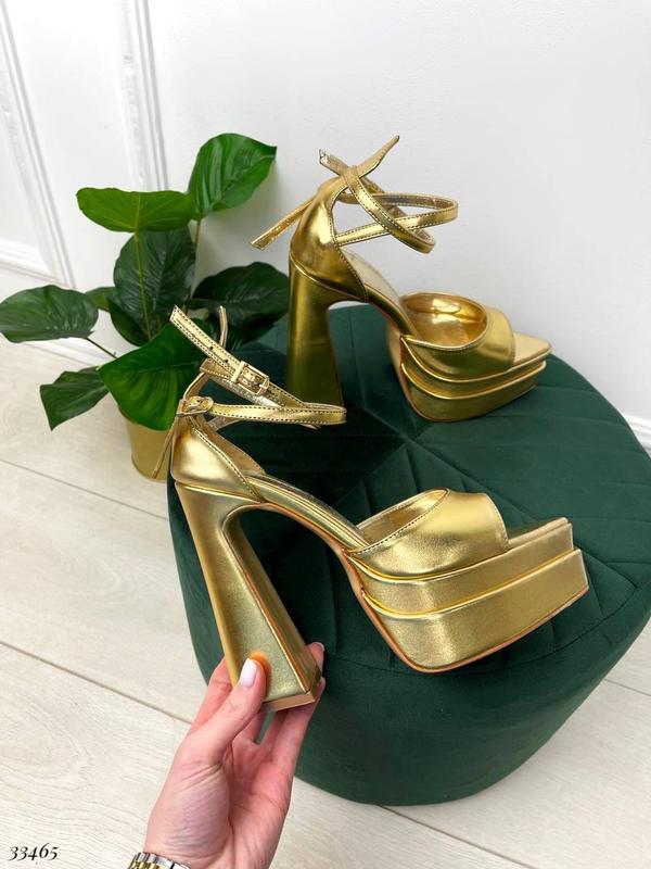 Босоножки с острым закрытым носиком Цвет: золото Материал: эко кожа Сезонность: лето Код товару: 33465 ▪️Высота каблука: 13,5см ▪️Платформа: 4,5см Размер по сетке: 36-23,5; 37-24; 38-24,5; 39-25,5; 40-26 см