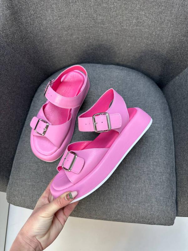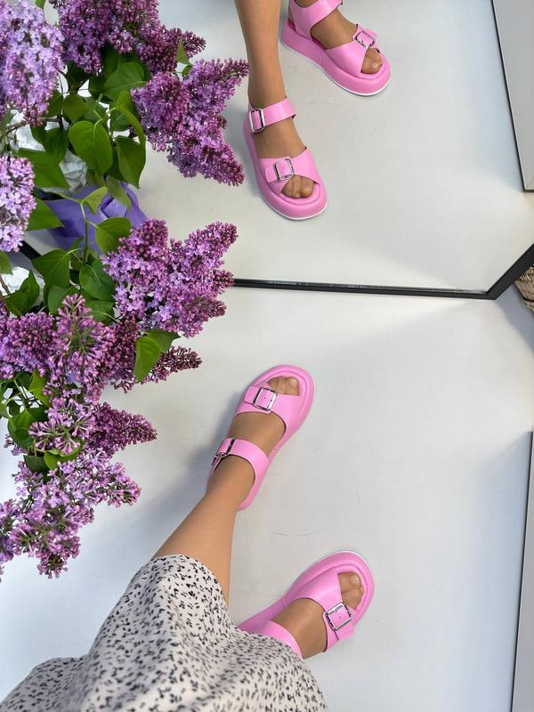 Яркие розовые кожаные босоножки с пряжками много цветов